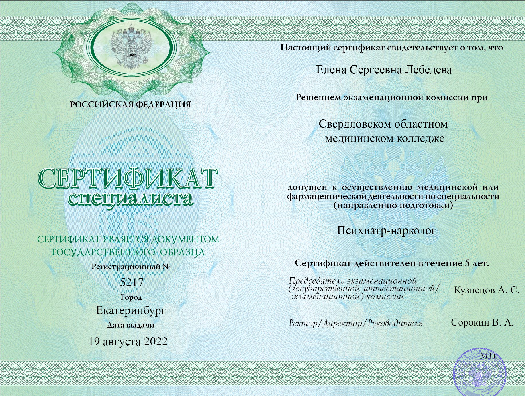 Елена Сергеевна Лебедева врач нарколог клиники доктора Стукаловой в Моршанске